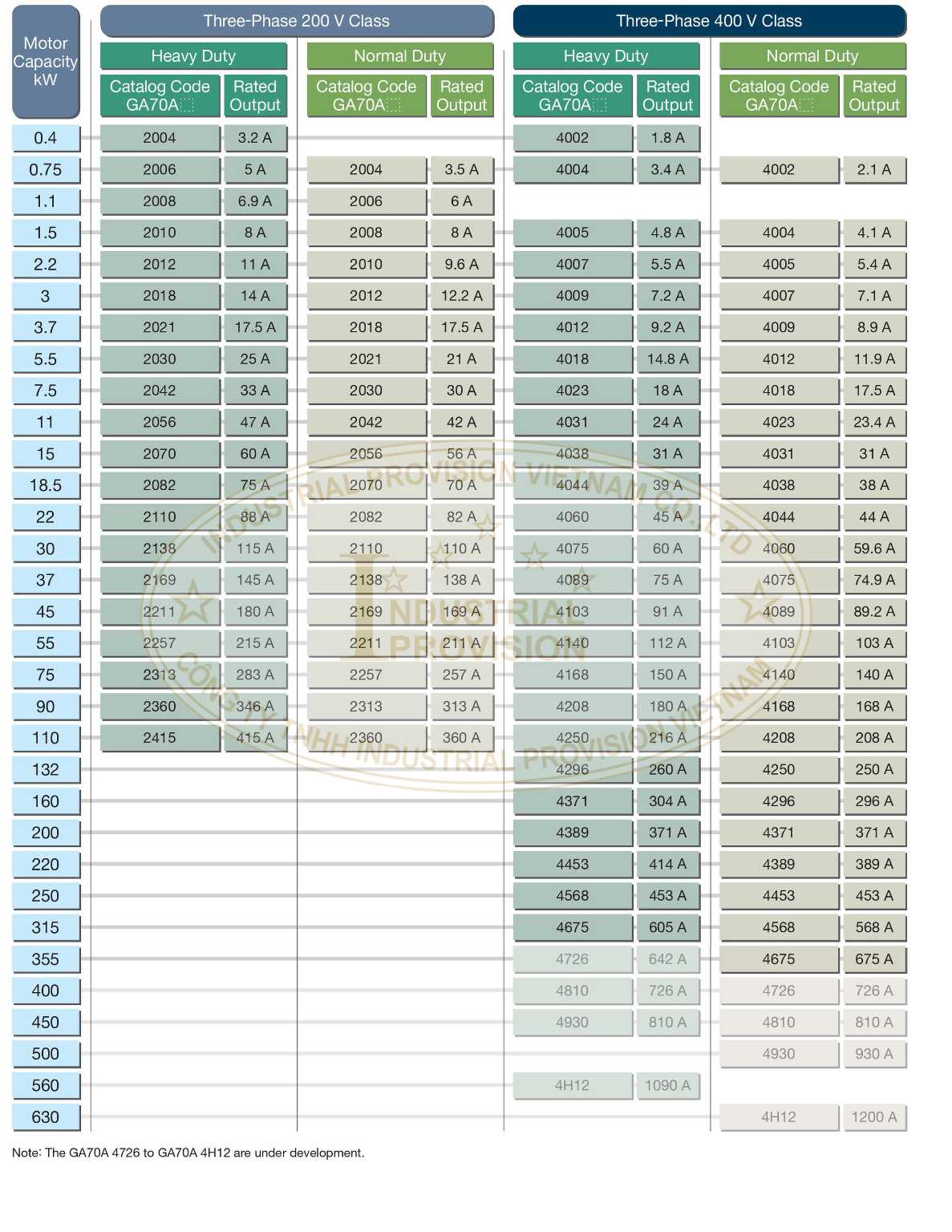 Ứng dụng cho các loại tải nặng như dòng A1000, ứng dụng cho nhiều loại máy móc và thiết bị công nghiệp như hệ thống nâng hạ, di chuyển cầu trục, động cơ bơm, quạt gió, máy đóng gói, băng tải, máy đùn nhựa, máy nén khí, máy dệt, máy phay, máy cắt tôn…